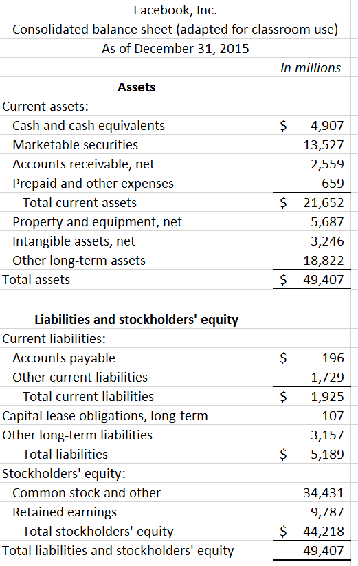 - Write Facebook’s accounting equation as of December 31, 2015.