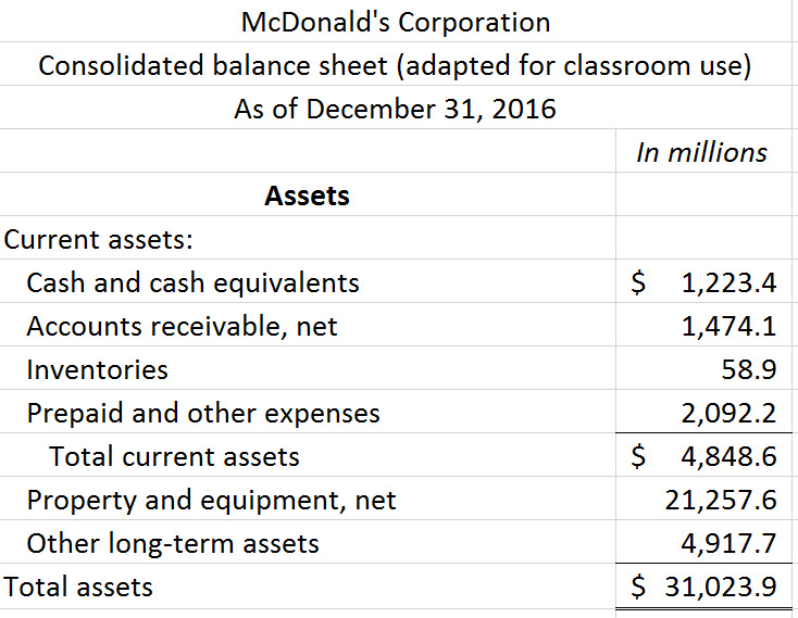 To follow are McDonald’s four basic financial statements for its most recent year, the year ending December 31, 2016. Please note that all statements have been adapted and condensed for educational use and should not be used for investment decisions.